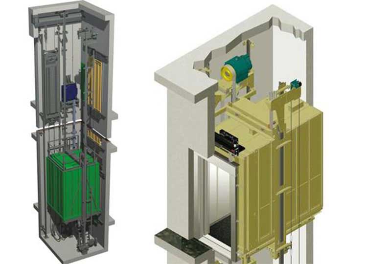 Makina dairesiz asansörlerin, 24 kata kadar olan binalarda 2000 kg kapasiteye ve 2,5 m/sn hıza kadar ...